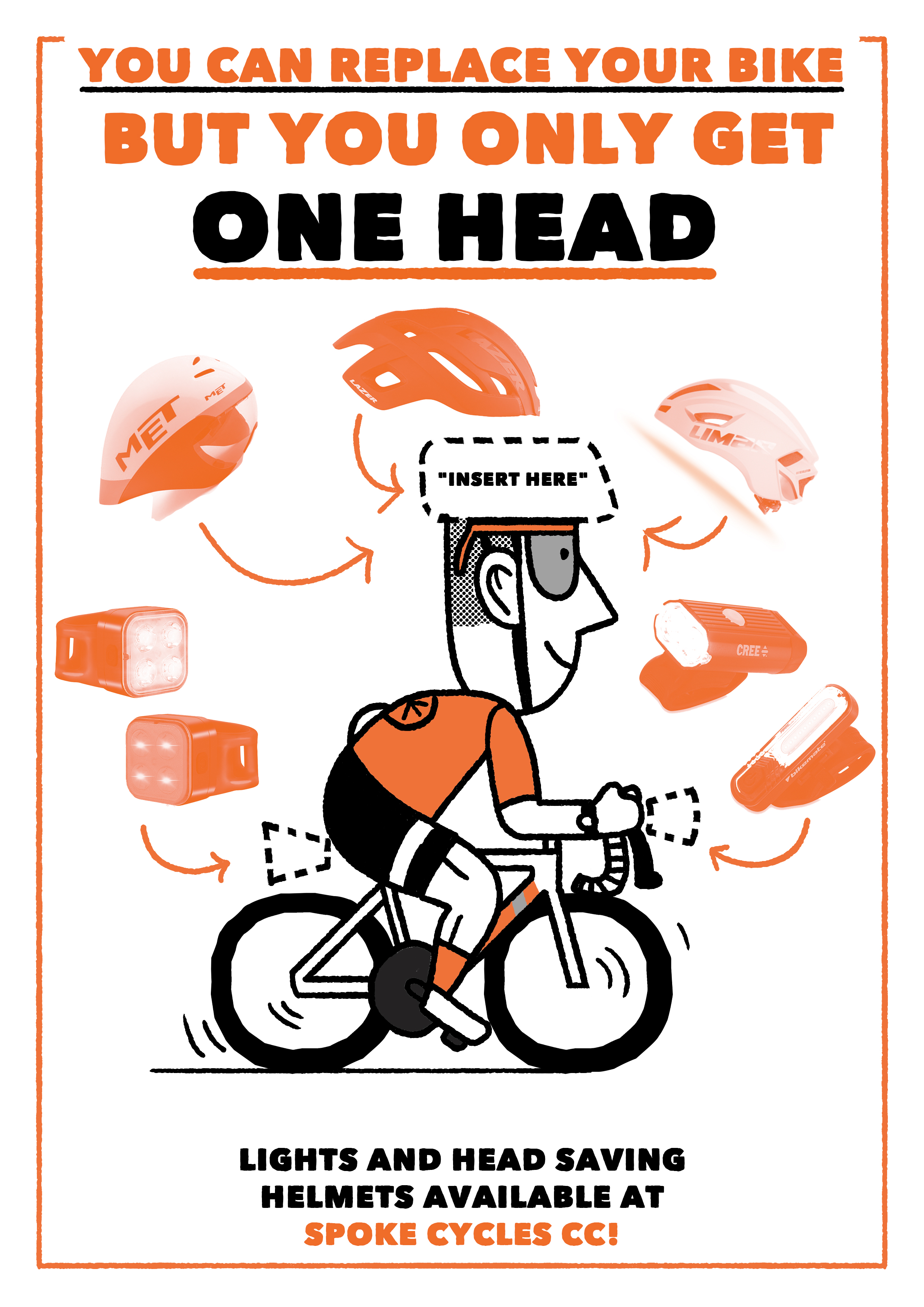 Illustrated poster to promote collaboration between Kinetic Cycles and Spoke Cycles CC
